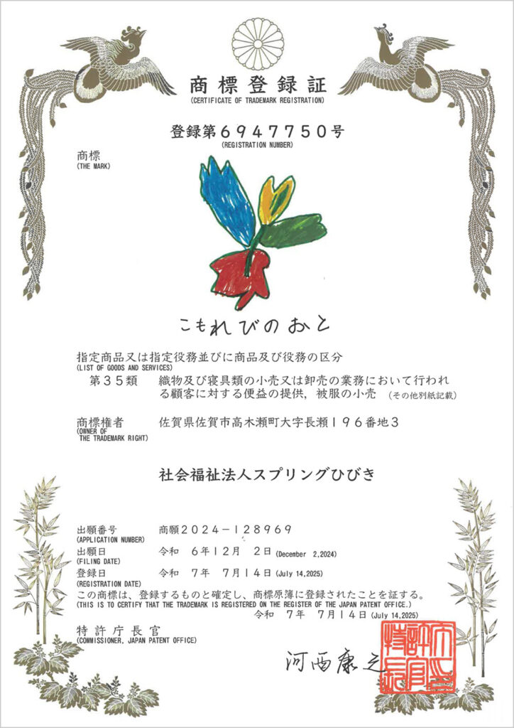 3. 「こもれびのおと」の商標登録が完了しました。